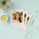 A soft ivory colored background, rose gold text. Personalize and add your photo and the details.