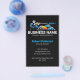 This striking business card features a vibrant blue and orange color scheme, perfect for a professional pressure washing service. The design prominently displays a skilled worker wielding a pressure washer, ready to tackle any cleaning job. Ideal for small businesses and independent contractors, this card clearly showcases your company name, owner's name, and essential contact information. Make a powerful first impression and let your clients know you're serious about sparkling clean results with this eye-catching design.