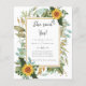 Linda aquarela Amarelo Sunflower e folhas verdes de sábio e folhagem neste país ruidoso boho temático convite de casamento.