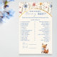 Quão bem seus convidados conhecem a futura mãe? Deixe o teste começar! Este folheto divertido apresenta nossa raposa da floresta e o estilo floral suave — brincalhão, bonito e cheio de giggles.