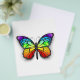 Borboleta monarca realista em todas as cores do arco-íris num fundo branco. Borboleta-arco-íris.