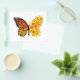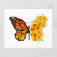 Borboleta de monarca laranja com asa decorada com papoila amarela e vibrante da Califórnia em fundo branco.