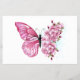 Arranjo de flores de borboleta cor-de-rosa com cereja japonesa cor-de-rosa floresce em fundo branco.