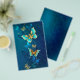 Ouro voador, borboleta de joias em fundo textural azul. Design com borboletas.