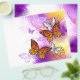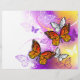 Laranja, borboletas monarcas detalhadas sobre luz, roxo, pitoresco, fundo pintado.