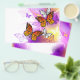 Laranja, borboletas monarcas detalhadas sobre luz, roxo, pitoresco, fundo pintado.
