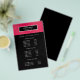 Glamoroso e sofisticado, o design do folheto exibe seus serviços, lista de preços ou informações comerciais sobre uma imagem digital de um padrão de brilho metálico rosa Raspberry. Sobreposição de faixa preta.