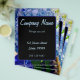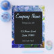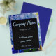 Buquês de hydrangeas azuis roxas em vasos azuis cobaltos enquadram o espaço perfeitamente posicionado para suas informações personalizadas que farão uma bela declaração inesquecível para sua empresa ou empresa.