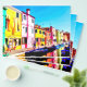 Esta pintura digital apresenta a bela e colorida cidade de Burano em Veneza, Itália.