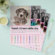 O folheto apresenta abas destacáveis ao longo da parte inferior, adicionando um elemento prático e interativo ao design. Cada aba inclui informações de contato ou detalhes sobre os serviços do criador, facilitando que indivíduos interessados destacem uma aba e a levem consigo para referência futura.