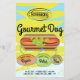 Chame a atenção de seus clientes com este ilustrado vetor brilhante de um cachorro quente gourmet. Substitua o logotipo e edite o texto para personalizar para o seu restaurante. Clique em "personalizar" para mais modificações.