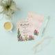 Por favor, note que este convite está no papel de folheto e é muito fino. Os envelopes não estão incluídos. Para convites mais espessos (mesmo design) visite nossa loja. Um fundo cor-de-rosa azul-rosa pincelado rústico, cor-de-rosa, decorado com cactos florais coloridos. Personalize e seus nomes e detalhes.