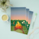 Este design apresenta marshmallows em um palito brinjando sobre um fogo. O fundo é uma floresta com céu ao anoitecer. A parte de trás desta carta apresenta uma floresta de árvores. Estes panfletos seriam excelentes para um verão ou acampamento ao ar livre. Clique em Personalizar para adicionar seu texto. As fontes de madeira Packenham funcionam especialmente bem para esta design.