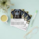 Um folheto branco elegante e minimalista com Strips Lágrimas com uma foto personalizável de um labrador preto giro, perfeito para andador de cães e babá de estimação, educador de comportamento canino, groomer. Você pode substituir a foto pelo seu próprio logotipo! No fundo há um padrão de pata de cachorro!
