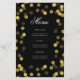 Design de "Programa de Festa de aniversário" elegante com Glitter Confetti em Dourado e preto com texto personalizado.