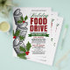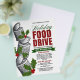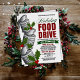 Folheto de arrecadação de fundos de caridade de Comida de Férias Minimalista com comida enlatada empilhada e emblemas verdes cobertos de neve. Destaque com cores de feriado ousadas e tipografia elegante.