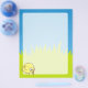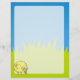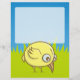 Um desenho animado de pássaros amarelo giro e engraçado sobre a grama e fundo do céu.
