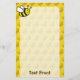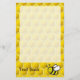 Cartoon voador de abelha sorridente sobre fundo de colmeia de abelha sem costura.