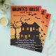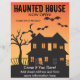 O folheto perfeito para o seu evento de Halloween! Uma casa assombrada no pôr do sol com árvore morto é uma cena assustadora com morcegos voadores! Edite o texto para personalizar o seu folheto de Halloween pessoal! Crie panfletos personalizados incríveis para férias, música, banda e promoções DJ!