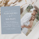 Budget Dusty Blue Wedding Primavera ou Summer Photo on Back Wedding Invtions - inclui uma bela e elegante tipografia de roteiro com uma cor simples e clássica moderna para a celebração especial do dia do casamento.