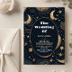 Flyer Casamento Celestial Azul Dourado à Meia-Noite