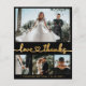 Ortografia Dourada Elegante E Elegante Do Coração, Casamento 4 Colagem De Fotos Preto Obrigado Cartão Fino. modelo de cartão de casamento na moda minimalista com quatro (4) imagens em grade na frente e uma (1) foto no verso. Texto de "obrigados e amor" em uma letra cursiva escrita caligrafia escrita bonitinha com letra cardíaca com cauda de banho em ouro sobre fundo preto. Personalize com seu nome e obrigado sua mensagem. Se precisar de ajuda ou item correspondente, entre em contato com o designer!