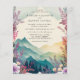 Este lindo Watercolor Floral Primavera Orçamento Casamento Invitation Flyer apresenta uma paisagem impressionante de colinas rolantes e montanhas majestosas à distância, todas feitas em delicadas sombras pastéis. O convite é adornado com uma vasta gama de florais pintados à mão, em tons de rosa mole, lilás e pêssego. As flores são arranjadas articamente em torno das bordas do convite, moldando o texto central de forma graciosa e romântica. O texto do convite em si é impresso em uma bela fonte serif, num tom de cinza preto quente que complementa as cores pastel do design floral. O texto é simples e elegante, com os nomes dos casais e a data do casamento destacados no topo, seguidos do convite a seguir. O efeito geral é um romance caprichoso, com o design floral de aquarela acrescentando um toque de encanto à paisagem da montanha. Este convite é perfeito para um casamento de primavera, ou qualquer casamento que comemore a beleza da natureza e as alegrias do amor.