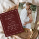Budget Burgundy Romantic Wedding Primavera ou Summer Photo on Back Wedding Invtions - inclui uma bela e elegante tipografia com uma moderna cor simples e clássica para a celebração especial do Dia do Casamento.