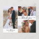 Orçamento, Casamento de Colagem de Fotos com Script Moderno Minimalista Elegante 4 Obrigado A Você personalizou o barato com baixo orçamento. modelo de na moda do obrigado de casamento, com quatro (4) fotos na frente e uma foto na parte traseira. Com o texto "Obrigado" em uma fonte de script tipográfico, escrita à mão, com letras sujas, com inchaço em preto sobre fundo branco. Um pouco de amor entre os nomes. Na parte de trás, uma foto horizontal e seu obrigado, você envia uma mensagem modelo. ***POR FAVOR, NOTE! *** O PAPEL ORÇAMENTAL/FLYER É MAIS FINO DO PAPEL. NENHUMA ENVELOPES INCLUÍDA.** UPGRADE O PAPEL PARA UM PAPEL MAIS ESPESSURO. *** Personalize o nome personalizado e a mensagem do obrigado. Se preferir escrever manualmente a sua nota, basta eliminar o texto de amostra para obter mais espaço. Se precisar de ajuda ou item correspondente, entre em contato com o designer!