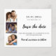 Observe que esta opção Save the date (Salvar a data) está no papel do folheto e muito fina. Os envelopes não estão incluídos. Para Cartões salve a data mais espessos (mesmo design) visite nossa loja. A Guardar o cartão de data para o seu casamento. O texto: Salvar a Data é gravado com um script de estilo com letra de tendência grande. Personalize e adicione 3 fotos. Você pode adicionar seu esquema de cores de festa na ferramenta design.