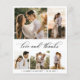 Orçamento, moderno, Elegante Barato de Colagem de Fotos 5 Foto, Obrigado Flyer em Preto e Branco. Na moda, modelo de cartão de casamento minimalista com cinco (5) imagens em grade na frente e uma (1) foto no verso. Texto de "obrigados e amor" em um texto cursivo escrito à mão com letra caligráfica com cauda estática. Personalize com seu nome e obrigado sua mensagem. Se precisar de ajuda ou item correspondente, entre em contato com o designer!