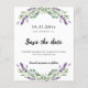 Flyer casamento de eucalipto lavanda salvar data