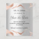 Observe que esta opção Save the date (Salvar a data) está no papel do folheto e muito fina. Os envelopes não estão incluídos. Para Cartões salve a data mais espessos (mesmo design) visite nossa loja. Um moderno e elegante Salve a Data para um casamento. Um fundo com aspecto fino prateado, decorado com veias de mármore rosa. Personalize e adicione uma data e seus nomes. O texto: Salvar a Data é gravado com um script de estilo com letra de tendência grande. Voltar: adicione o URL do seu site de casamento ao código QR para obter mais informações sobre o seu casamento.