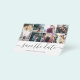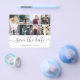 Características do save the date de casamento dentro do orçamento incluem caligrafia moderna e foto.