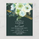 As Chamadas Florais Douradas de Casamento com Lusas Florais de Turquesa Verde de Orçamento apresentam um buquê lindo de turquesas, flores brancas e verdes com sotaques dourados em fundo verde. Abaixo está sua informação personalizada sobre o casamento. Simplesmente personalize editando o texto nas caixas de texto fornecidas. Projetado para você por ©Evco Studio www.zazzle.com/store/evcostudio