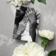 Flyer casamento floral preto, branco e vermelho