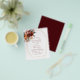 Chic e Modern Burnt Orange and Burgundy Floral Rosa Fllowers Boho Boho Bohemian Botanical Greenery Watercolor Faux Gold Foil Frame Autumn (outono), Winter, Primavera ou Summer Wedding Invances - inclui bela e elegante tipografia de roteiro para a celebração especial do dia do casamento.