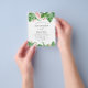 Orçamento Folhas de Palma Verdes Tropicais e Flores Rosa Esmagadas Aquarela Primavera ou Convites de Foto ou Imagens de Casamento de Verão - inclui uma bela e elegante tipografia com flores botânicas tropicais modernas e verde para a celebração especial do Dia de Casamento.