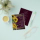 Madeira russa e flores solares. Folhas Florais de ouro Faux. A fonte do script é realçada com a fonte de nome de serif de leitura fácil. Fácil de ajustar para as suas necessidades de casamento. Todos em um convite