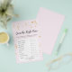 Esta Celebração Dourada sobre o Chá de fraldas Rosa acha que o jogo de preço certo é perfeito para um simples chá de fraldas ou borrifo para uma menina. O design moderno apresenta decorações falsas em ouro sobre um fundo cor-de-rosa macio com caligrafia de cinza elegante. Personalize o cartão de jogo com o nome do convidado de honra e a data.