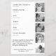 Uma moderna Celebração do folheto do programa de funeral preto e branco da Life (amigável ao orçamento) para um funeral ou um serviço de memorial. Personalize com sua própria foto a cores ou preto e branco. Adicione seu nome, datas de nascimento/morte e imagem de uma maneira clássica para dizer suas despedidas. A frente deste programa funerário tem um lugar para uma foto de cheio com um gradiente branco para ajudar o pop de texto preto. O verso tem um lugar para detalhes minimalistas e 5 fotos pequenas. Linhas limpas e um olhar moderno fazem um programa de funeral clássico. Fornecer este programa funerário na reunião de luto ou durante o funeral.