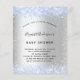 Por favor, note que este convite está no papel de folheto e é muito fino. Os envelopes não estão incluídos. Para convites mais espessos (mesmo design) visite nossa loja. Para um convite elegante e chá de fraldas, celebrando um menino. Um fundo metálico falso prateado. Decorado com brilho azul claro. Personalize e adicione um nome e detalhes. Script de estilo com letra moderna