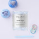 Por favor, note que este convite está no papel de folheto e é muito fino. Os envelopes não estão incluídos. Para convites mais espessos (mesmo design) visite nossa loja. Para um convite elegante e chá de fraldas, celebrando um menino. Um fundo de olhar mal prateado. Decorado com chuva de confete azul claro, aspersor. Personalize e adicione um nome e detalhes. Script de estilo com letra moderna
