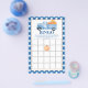 Chá de fraldas de carrinho azul de abóbora, cartão de jogo Bingo.