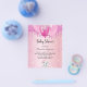 Por favor, note que este convite está no papel de folheto e é muito fino. Os envelopes não estão incluídos. Para convites mais espessos (mesmo design) visite nossa loja. Para um chá de fraldas, comemorando uma menina. Um plano de fundo de gradiente cor-de-rosa. Decorado com brilho falso, balões e uma bebê elefante. Personalize e adicione o nome da futura mãe e os detalhes da festa. O nome e o texto: Chá de fraldas são escritos com um script de estilo manuscrito