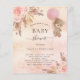 Por favor, note que este convite está no papel de folheto e é muito fino. Os envelopes não estão incluídos. Para convites mais espessos (mesmo design) visite nossa loja. Para um chá de fraldas moderno estilo boho. Um fundo rosa dourado, rosado, rosado e roxo, com aspecto metálico. Decorado com ouro rosa e flores cor-de-rosa, rosas, grama-pampas e ursinha-peluche segurando um balão rosa. Personalize e adicione um nome e detalhes da parte.