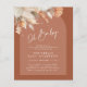 Flyer chá de fraldas de folhagem orçamento terracotta
