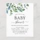 Orçamento Verde Verde Floral Primavera de Aquarela Botânica Convites para Bebê sobre fundo verde e branco - inclui uma bela e elegante tipografia com folhas botânicas modernas e verde para a celebração da Mãe-Ser especial.