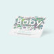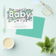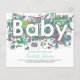 Esta mão desenhada como adorável e engraçada chá de fraldas aquarela com cor neutra do gênero convite orçamental em cores pastel mostra todo o adorável caos que um novo menino ou menina traz com brinquedos de fofinho, elefante, girafa, ursos, roupa suja, roupas de bebê, fraldas e muita lavagem criando a palavra tipografia BABY em um espaço negativo. Um convite fácil de personalizar, azul, verde, castanho e amarelo divertido. Arte original de Catherine Sweetman