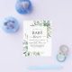 Orçamento Verde Verde Floral Primavera de Aquarela Botânica Convites para Bebê sobre fundo verde e branco - inclui uma bela e elegante tipografia com folhas botânicas modernas e verde para a celebração da Mãe-Ser especial.